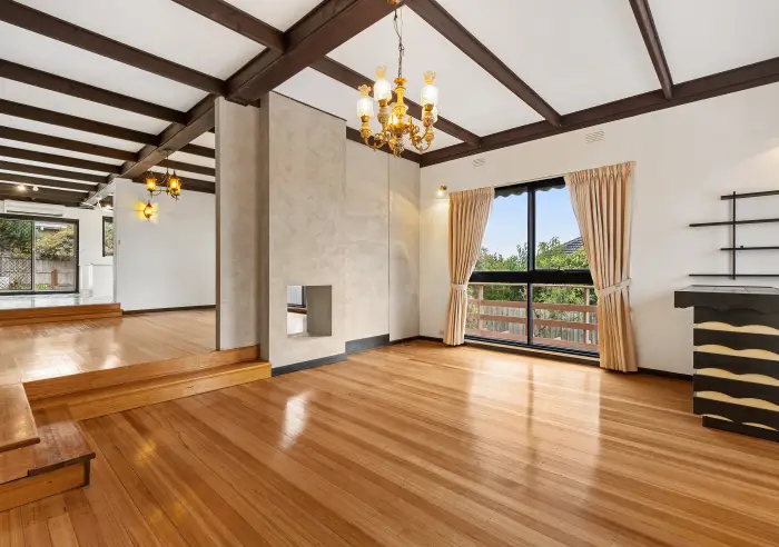 The existing residence is solid, light-filled and impeccably maintained, offering immediate comfort while you plan the future. Inside, a spacious sunken lounge flows into a formal dining zone and through to a generous open-plan kitchen/meals area featuring modern appliances and a breakfast bar – ideal for everyday living and entertaining. Polished hardwood floors add warmth and timeless character throughout, including in the three well-proportioned bedrooms.